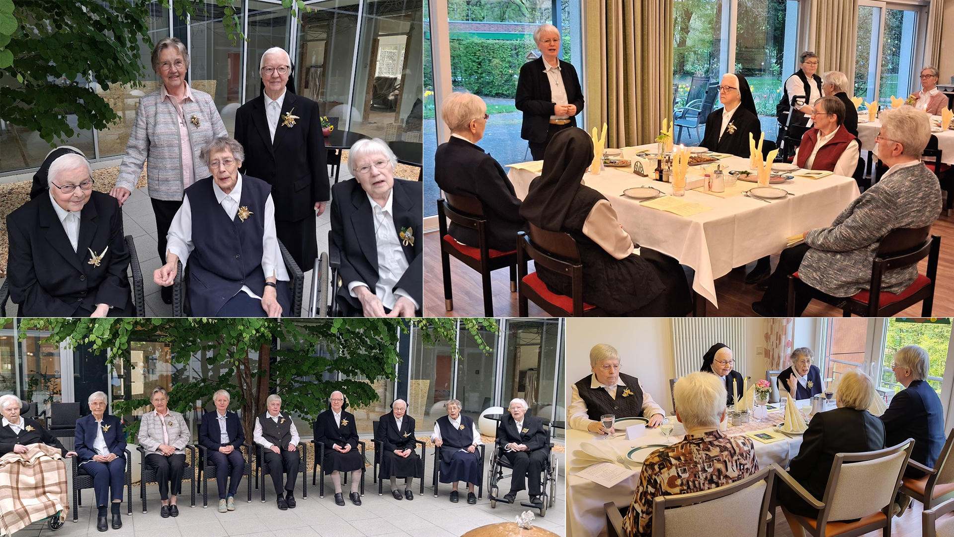 After a festive breakfast in the three refectories, there was a photo session followed by a toast with sparkling wine in the cafeteria. Our kitchen staff had also prepared a festive lunch for which nothing was lacking. The day concluded with an anniversary prayer service and a subsequent dinner.